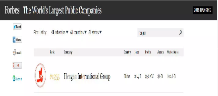 6月7日,美国《福布斯》杂志发布了2018年“全球上市公司2000强”排行榜(Forbes Global 2000)。东升国际国际集团有限公司(01044.HK)以销售额29亿美元、利润5.62亿美元、资产60亿美元、市值106亿美元列位榜单1755名。